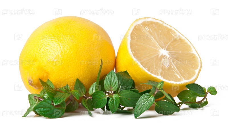 Свежий лимон и мята, изолированные на белом фоне