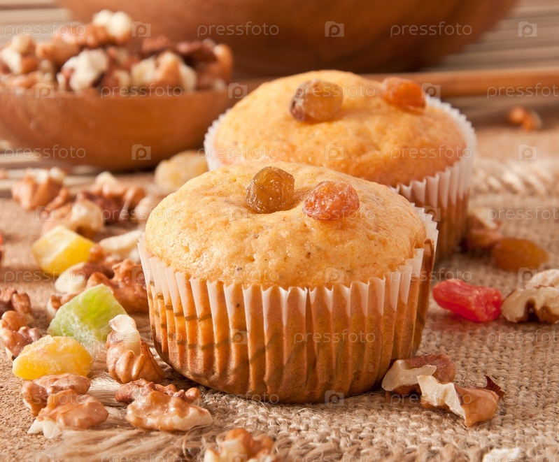 Кексы с изюмом и орехами