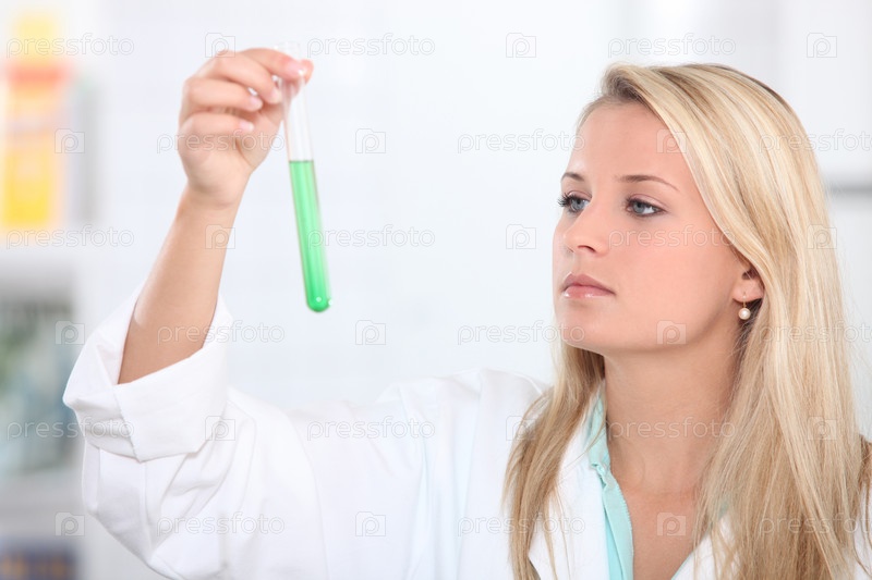 Светловолосая студентка в лаборатории