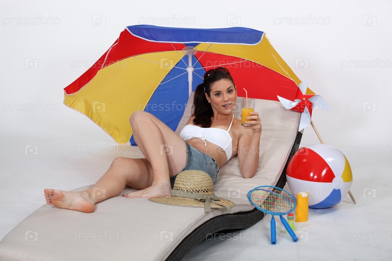 Привлекательная женщина лежит на шезлонге