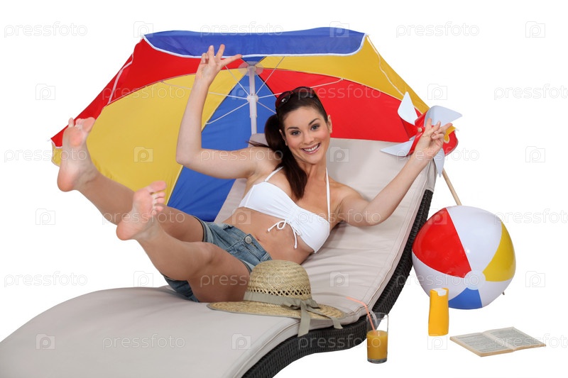 Привлекательная женщина лежит на шезлонге