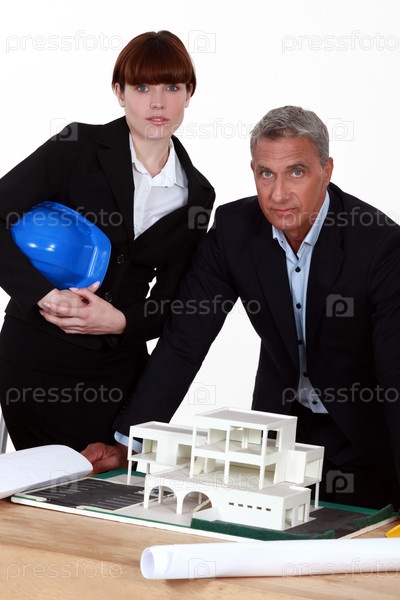 Архитекторы позируют с моделью здания