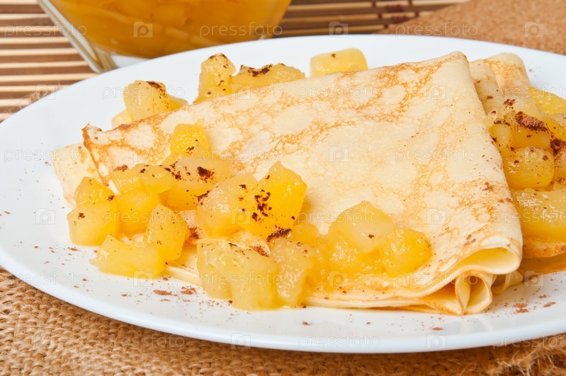 Сладкие блинчики с карамелизированными яблоками и сливками