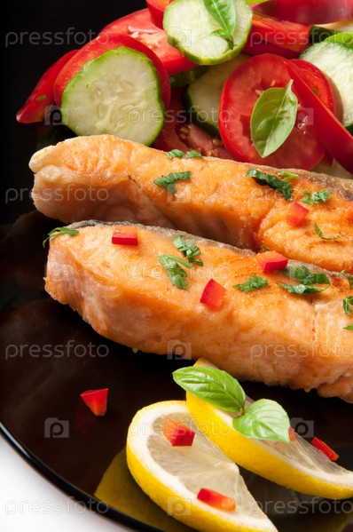 Рыбное блюдо. Лосось на гриле с овощами