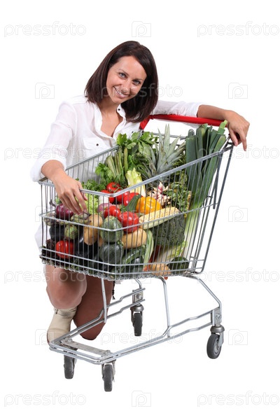 Женщина с тележкой, полной овощей