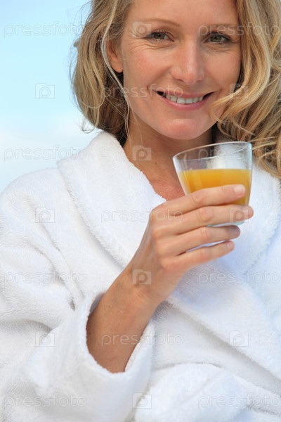 Женщина пьет апельсиновый сок