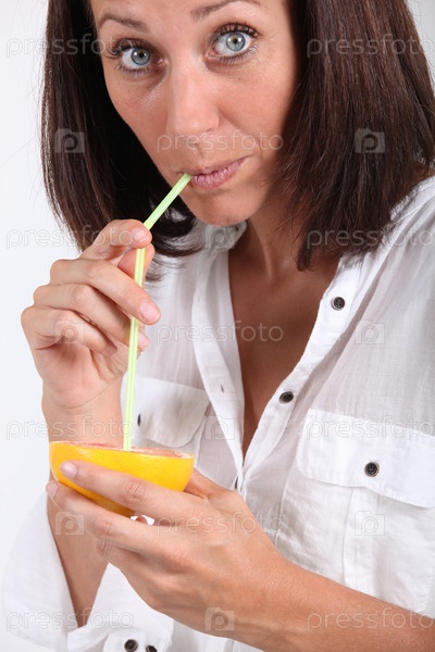 Женщина пьет апельсиновый сок