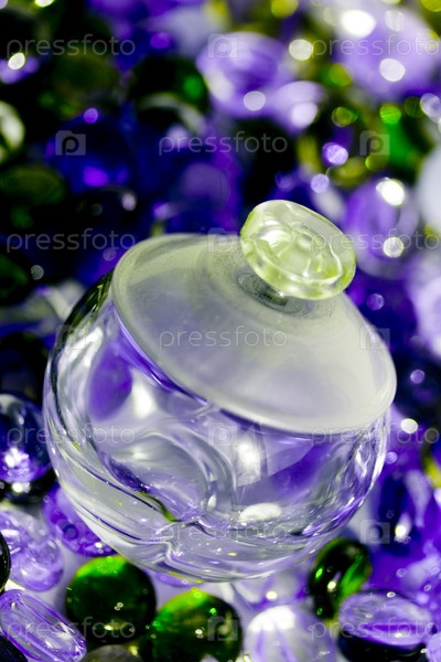 Бутылка с ароматом и стеклянные камни