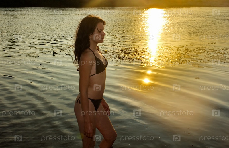 Девушка в реке на закате