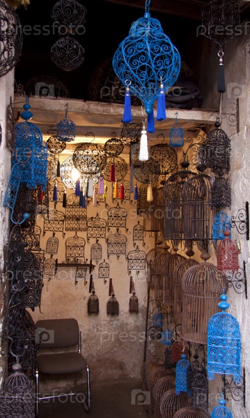 Лавка с кованными марокканскими светильниками