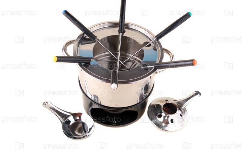 Какелон для приготовления фондю на белом фоне