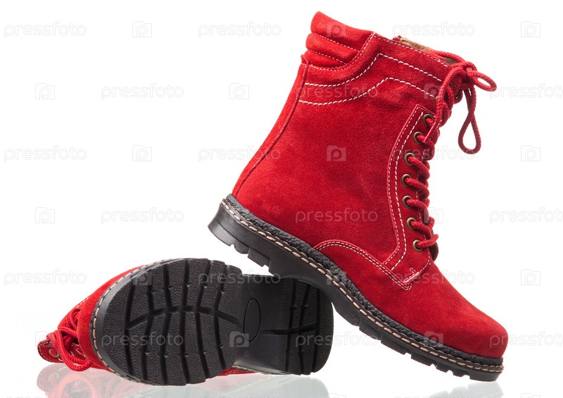 Высокие женские ботинки на белом фоне
