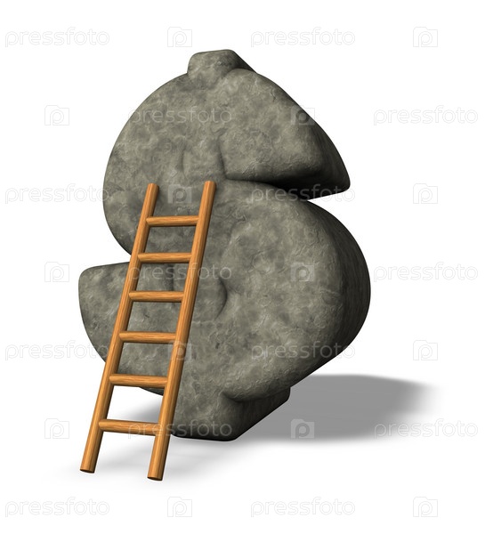 Лестница опирается на каменный доллар - 3d иллюстрация