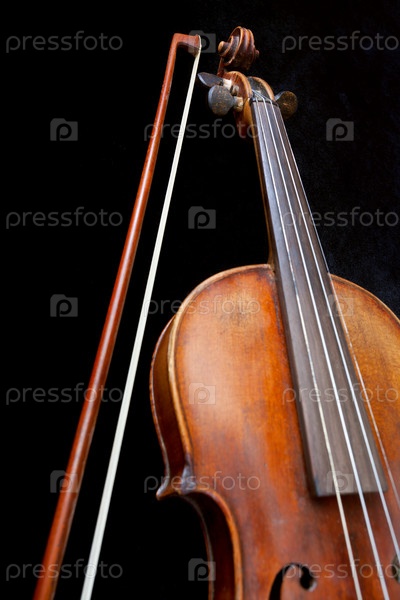 Скрипка и смычок на черном фоне