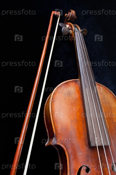 Скрипка и смычок на черном фоне