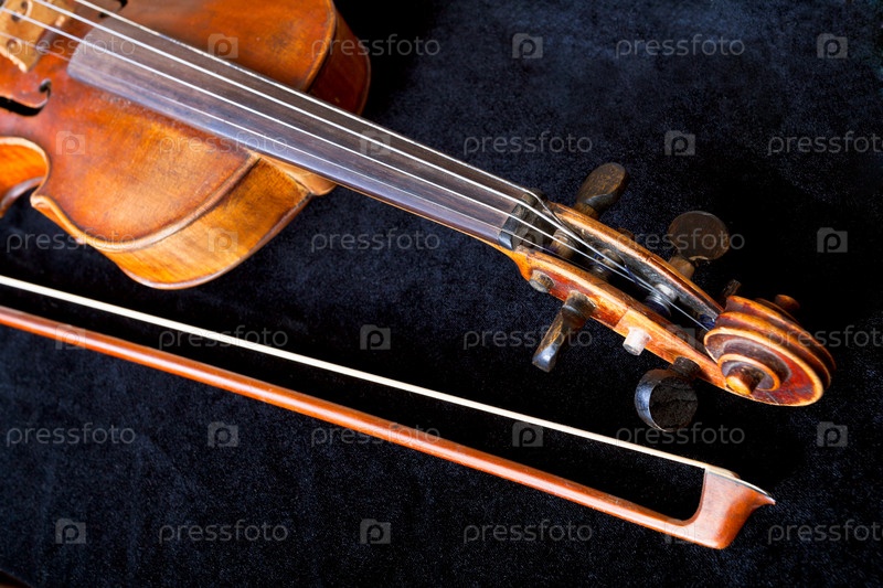 Скрипка и смычок на черном фоне