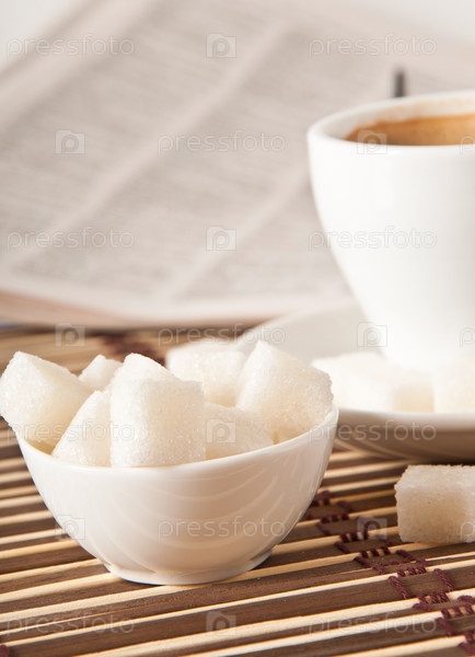 Кофе, сахар и газета крупным планом