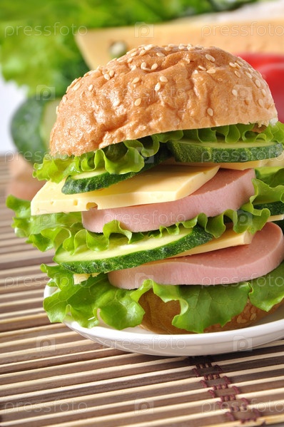 Бутерброд с колбасой, сыром и зеленью