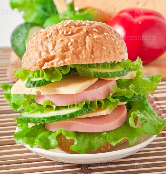 Бутерброд с колбасой, сыром и зеленью