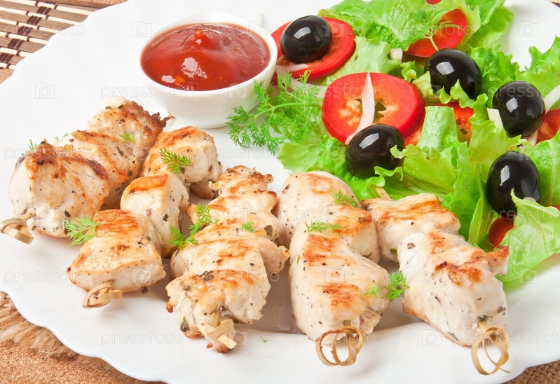 Шашлык из курицы с салатом