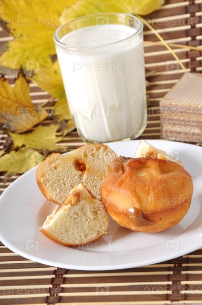 Завтрак. Стакан молока и пончик