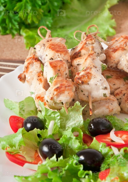 Шашлык из курицы с салатом