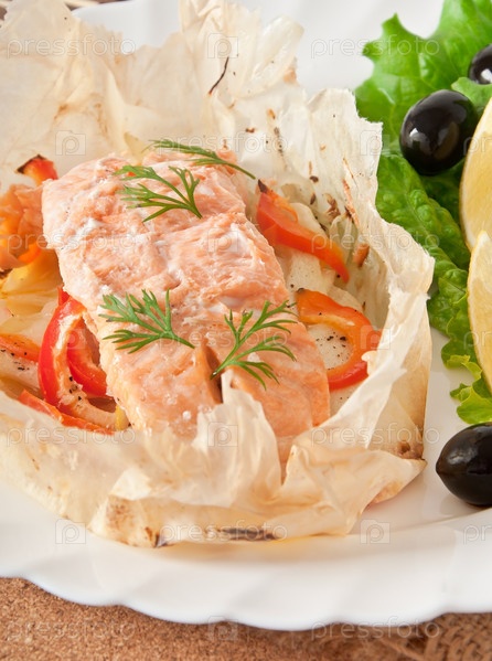 Запеченный лосось с овощами в конверте