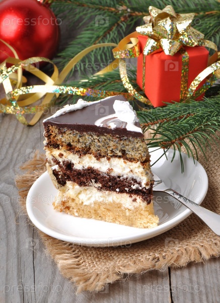 Рождественский торт на деревянном фоне