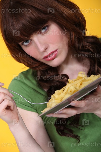 Женщина ест тальятелле