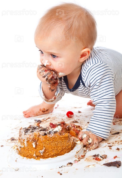 Ребенок с тортом на белом фоне
