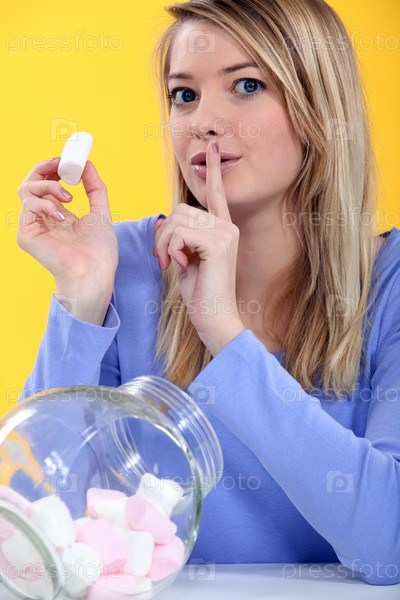 Женщина ест зефир