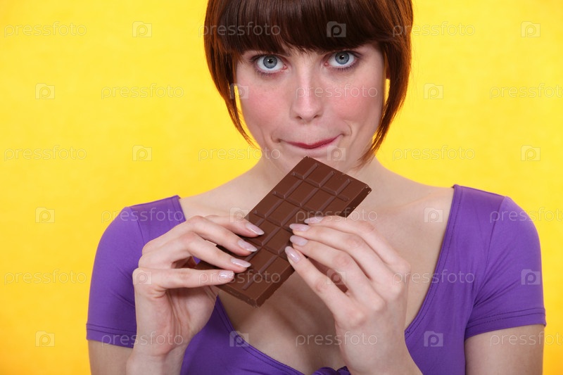 Женщина с плиткой шоколада