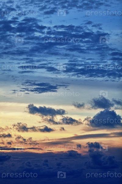Вертикальное красивое облачное небо на закате