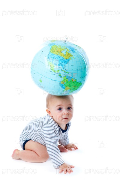 Мальчик с глобусом на голове