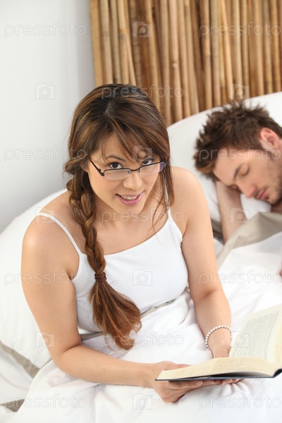 Девушка читает книгу в постели