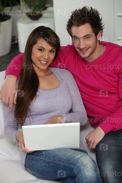 Привлекательная пара с ноутбуком
