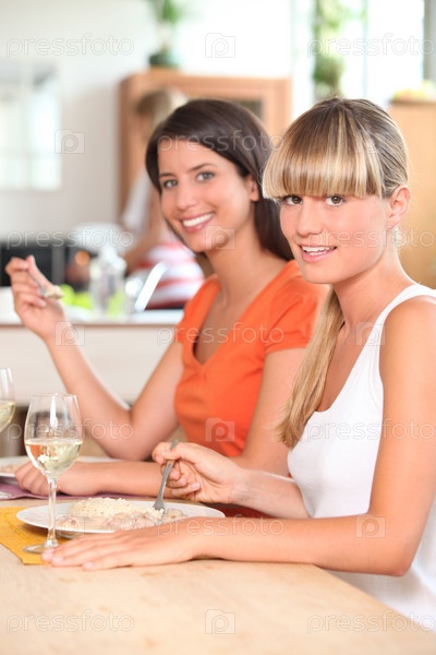 Две женщины-соседки едят дома