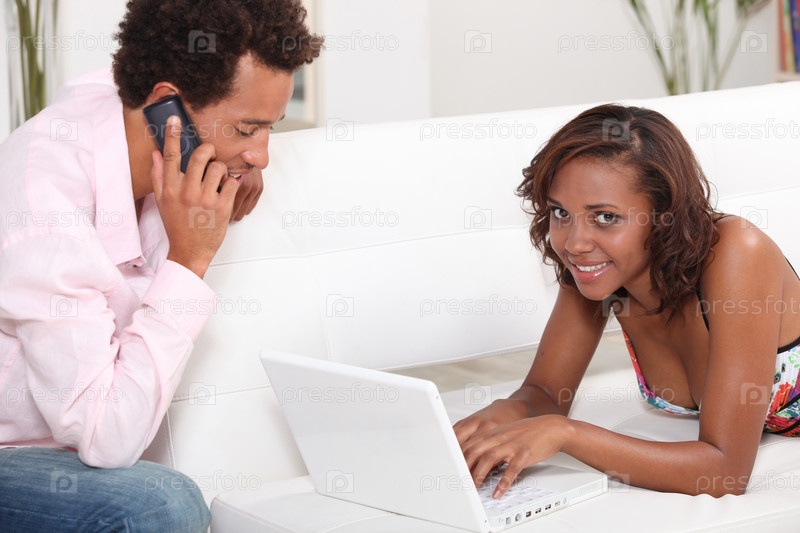 Пара с ноутбуком и телефоном