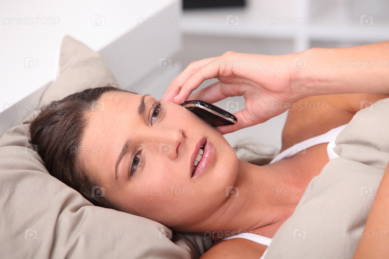 Женщина в постели с телефоном