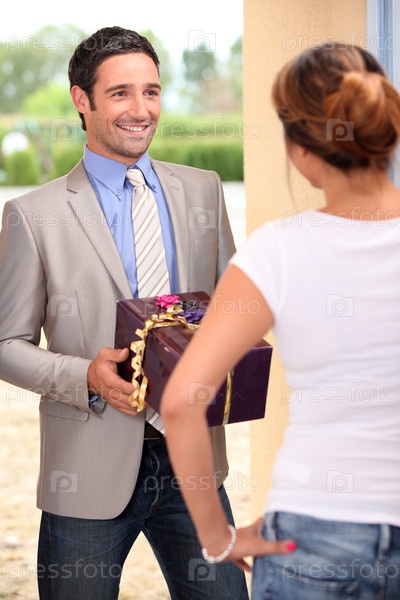 Мужчина дарит подарок женщине
