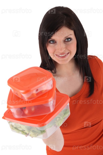 Женщина с контейнерами