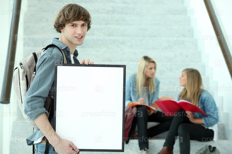 Студент держит пустой плакат