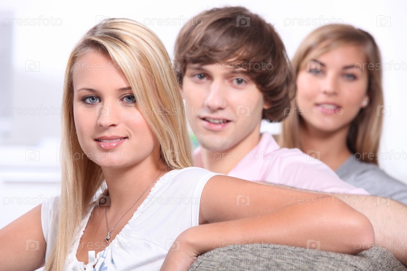 Друзья-подростки сидят на диване