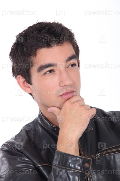 Молодой человек позирует в кожаной куртке