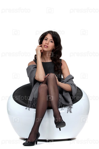 Брюнетка сидит в кресле