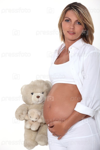 Беременная женщина с плюшевым медведем