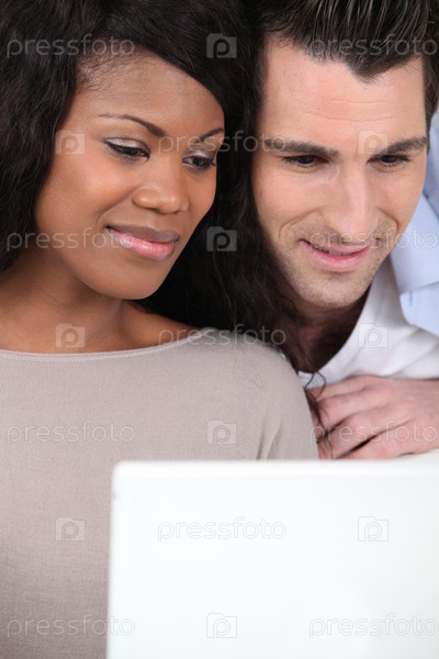 Пара смотрит в ноутбук