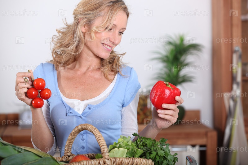 Жена смотрит на перец
