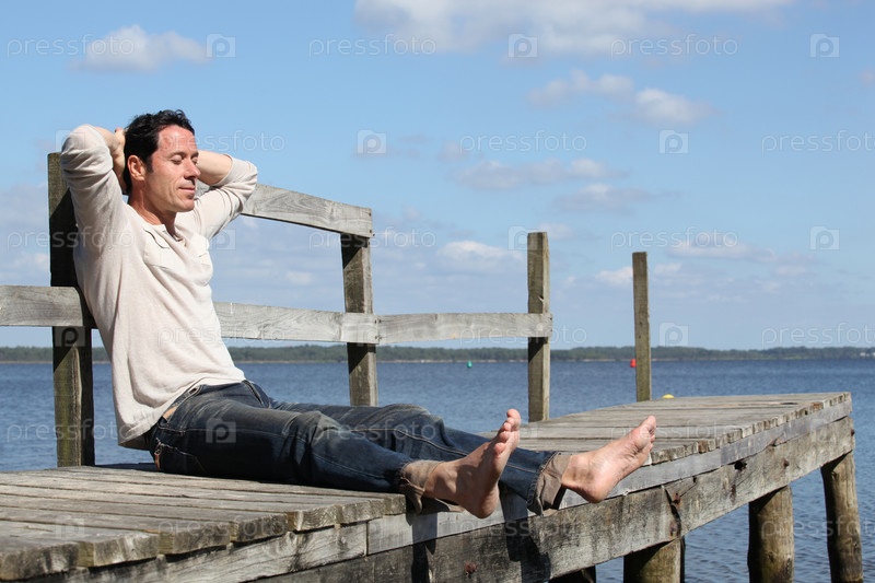 Мужчина сидит на пристани