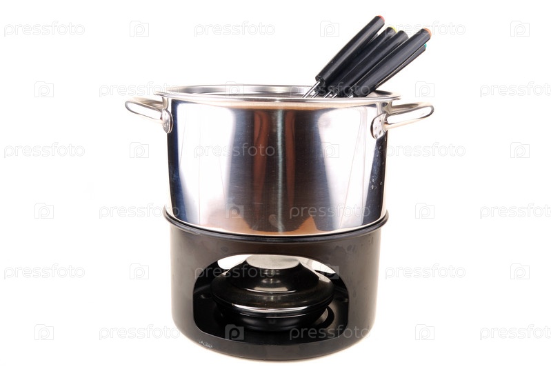 Какелон для приготовления фондю на белом фоне